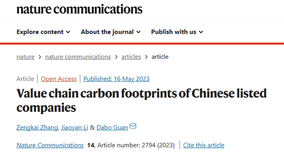 Zengkai Zhang, Jiaoyan Li, Dabo Guan* (2023) Value chain carbon footprints of Chinese listed companies. Nature Communications, 14, 2794.