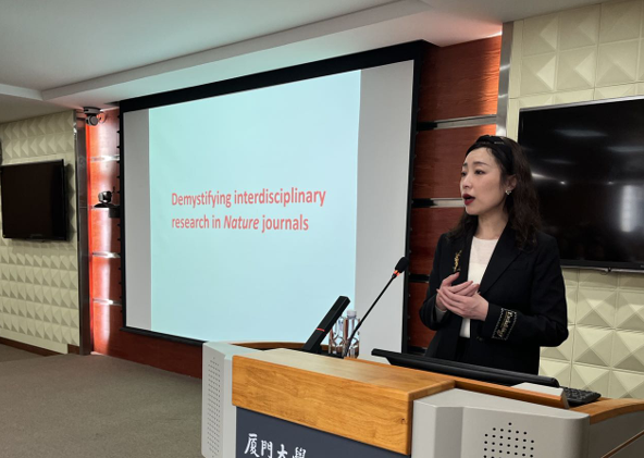 On March 9, Senior Editor of Nature Xia Yang delivered a lecture on “Demystifying Publishing in Top-Tier Journals” at Xiamen University Xiang’an campus. She was invited by Prof. Zhang Zengkai of FISO, who hosted the lecture.