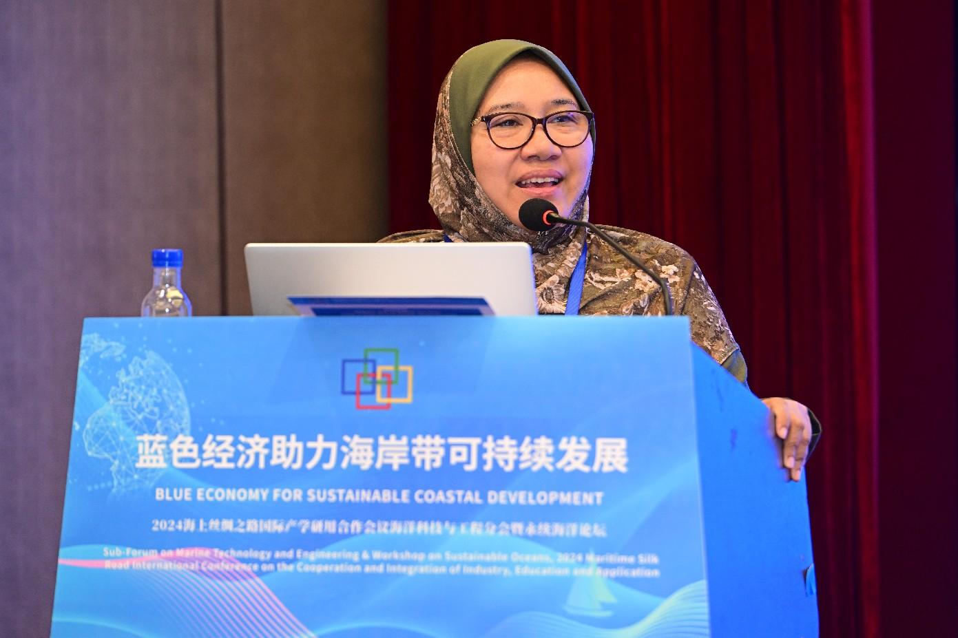 On November 5, the Sub-Forum on Marine Technology and Engineering & Workshop on Sustainable Oceans, 2024 Maritime Silk Road International Conference on the Cooperation and Integration of Industry, Education and Application (hereinafter the “Workshop”) was held in City Hotel of Xiamen. The Workshop was organized by Xiamen University, China Oceanic Development Foundation, Fujian Provincial Bureau of Ocean and Fisheries, and co-organized by College of Ocean and Earth Sciences of Xiamen University, Fujian Institute for Sustainable Oceans of Xiamen University, Sustainable Coastal Development Capacity-Building Research Lab, and State Key Laboratory of Mariculture Breeding. Themed “Blue Economy for Sustainable Coastal Development”, the workshop attracted more than 130 professionals and officials from dozens of institutes, government sectors and private sectors from China, India, Indonesia, Maldives, Malaysia, New Zealand, and South Africa. The Workshop was livestreamed globally.