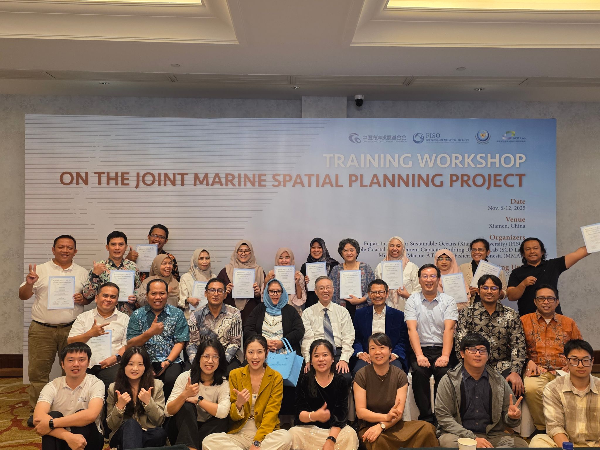 Xiamen, China — November 6–12, 2025 — Co-hosted by the Fujian Institute for Sustainable Oceans, Xiamen University (hereinafter “FISO”); the Sustainable Coastal Development Capacity-Building Research Lab (hereinafter “SCD Lab”); and Indonesia’s Ministry of Marine Affairs and Fisheries (hereinafter “MMAF”), and supported by the China Oceanic Development Foundation (CODF), the Training Workshop on the Joint Marine Spatial Planning (MSP) Project was successfully held in Xiamen.
